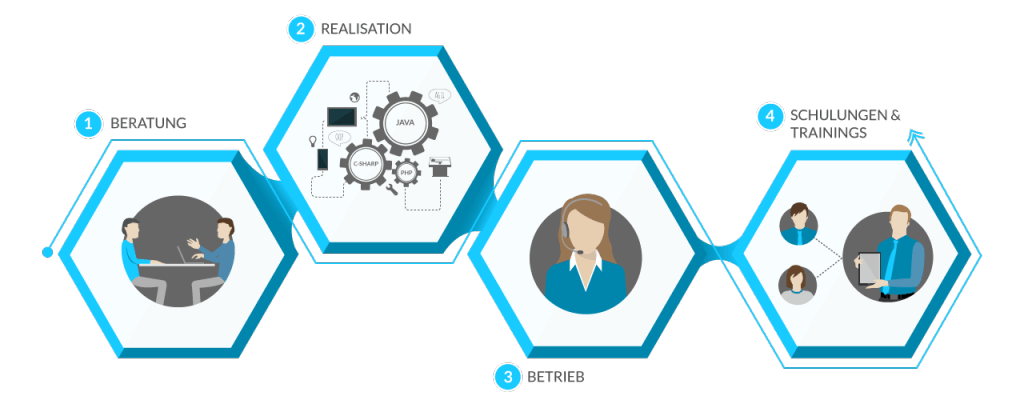 Neben individuellen Content, den Unternehmen über ein Content Management System eigenständig einstellen können, bieten wir fertigen „plug & play“ Content.