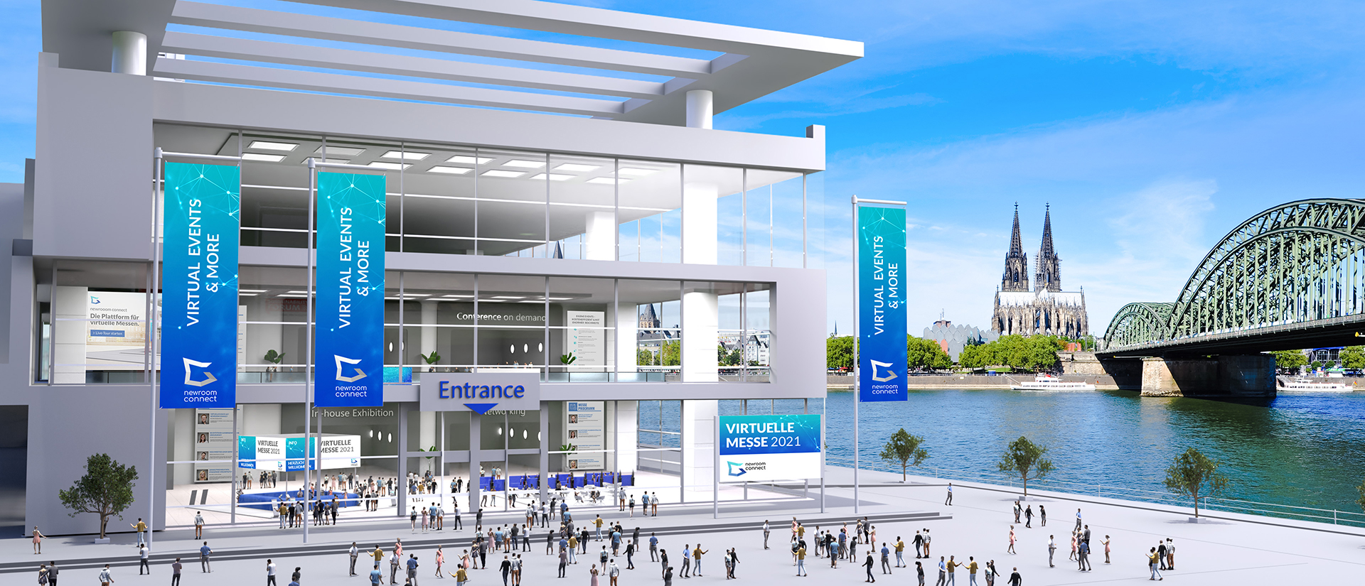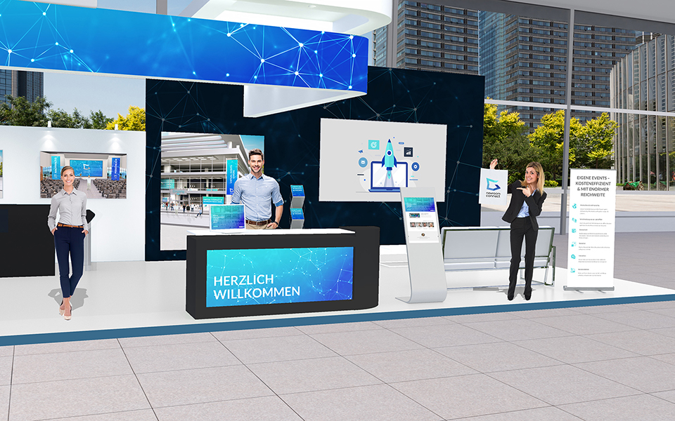 Wie auf einer physischen Messe präsentieren die Aussteller Ihre Unternehmen, Leistungen, Angebote und offenen Stellen auf einem Messestand. Der Besucher navigiert sich einfach und intuitiv per Klick über das Messegelände.
